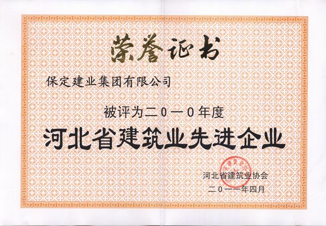 2010年度河北省建筑业先进企业