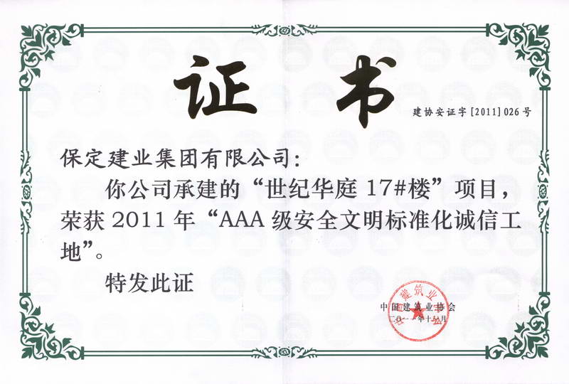 世纪华庭17楼全国3A级安全文明...