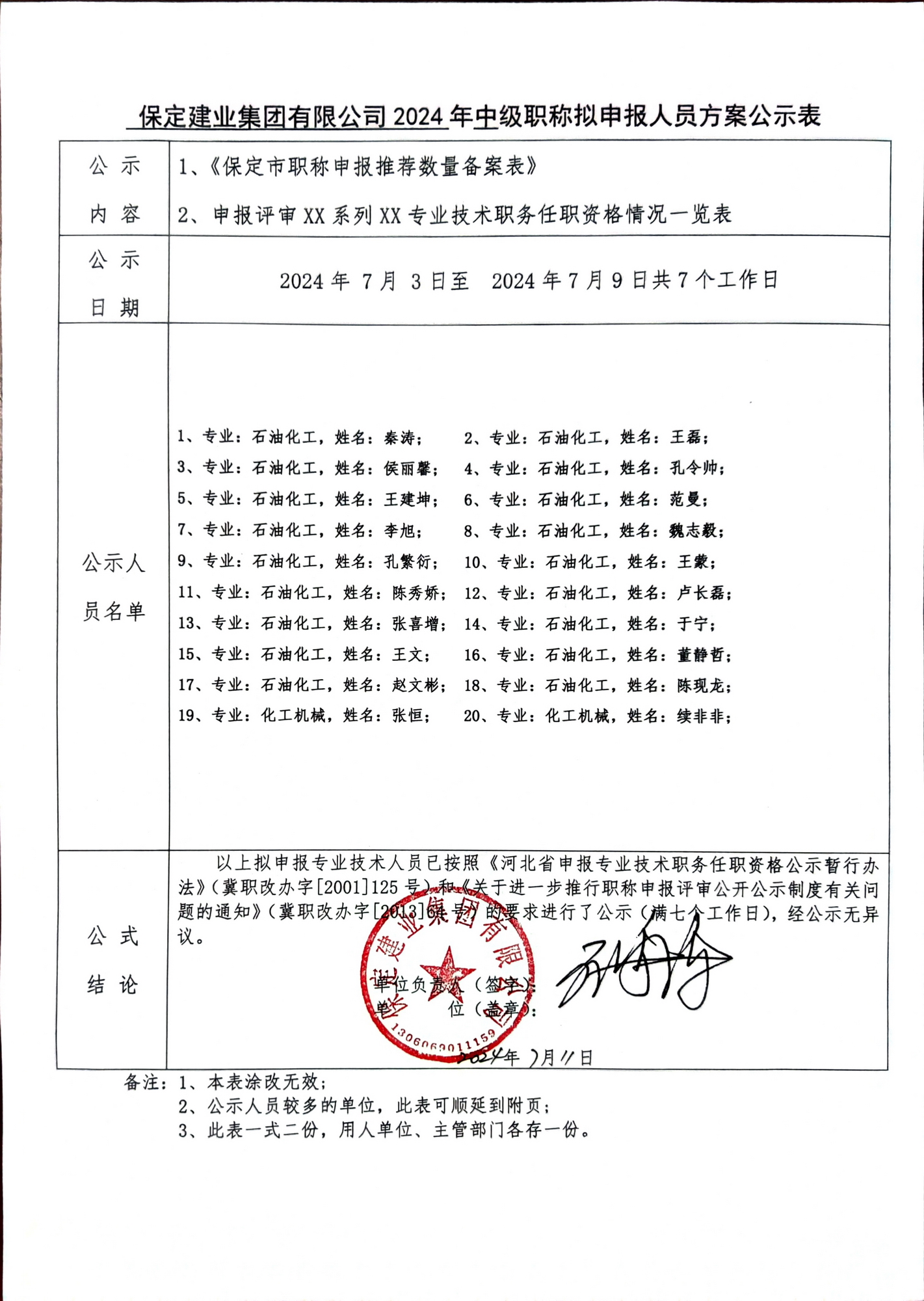 2024年中级职称拟申报人员方案公示-石化系列