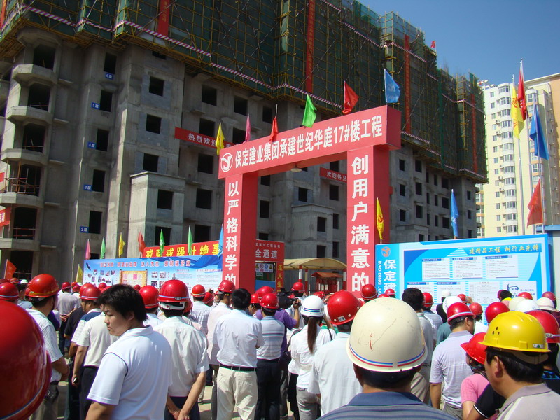 2010年7月20日,由市建设局安监站在华北电力大学会议室组织召开了建设系统安全文明施工现场会?;嵋橛惺?、市安监站领导,市、县、区建设局、安监站主要领导,全市及驻保主要建筑施工企业负责人参加。集团六公司世纪华庭17号楼项目部被选为与会人员参观的样板项目部。