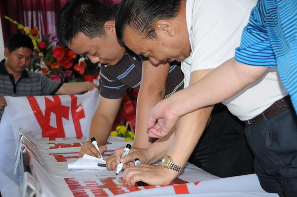 集团公司领导及管理人员在安全宣传标语上签名 |