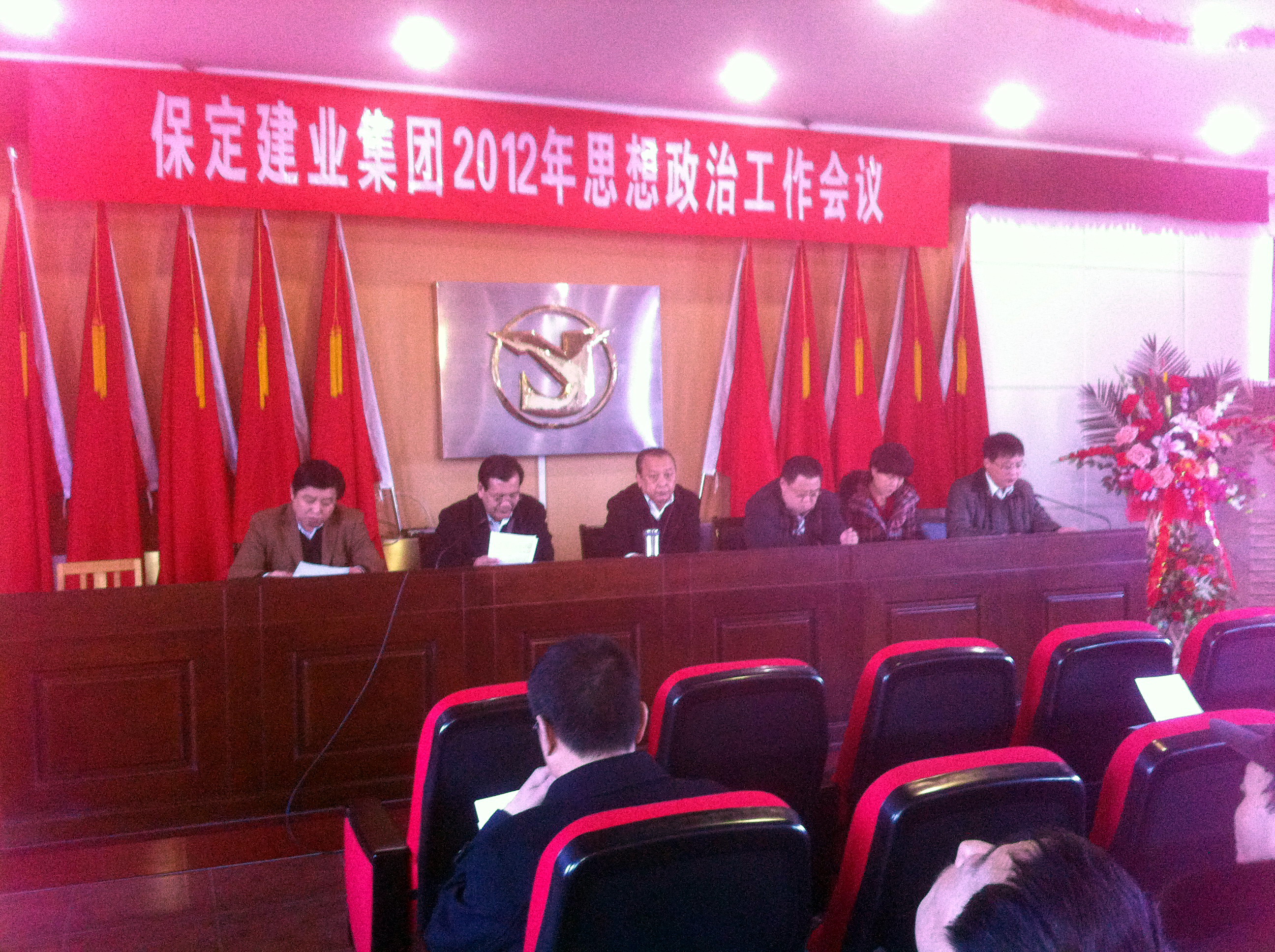 2012年3月14日,保定建业集团有限公司2012年思想政治工作会议在庄严的国歌声中拉开了序幕,会议由党委办公室主任马亚军主持,集团各公司党、政、工、团、妇、武装、保卫负责人参加会议。